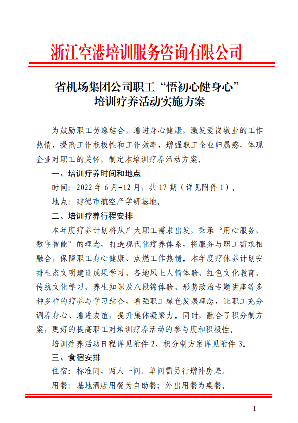 省機(jī)場(chǎng)集團公司職工(gōng)“悟初心健身(shēn)心” 培訓療養活動實施方案