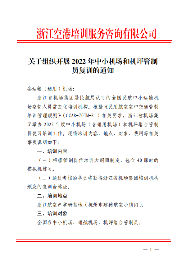 關于組織開(kāi)展 2022 年(nián)中小(xiǎo)機(jī)場(chǎng)和(hé)機(jī)坪管制(zhì) ε員(yuán)複訓的(de)通(tōng)知(zhī).pdf